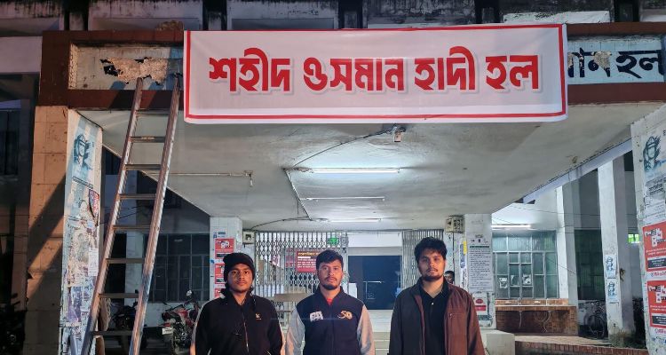 এর আগে গত বৃহস্পতিবার রাত ২টার দিকে ইনকিলাব মঞ্চের আহ্বায়ক শরীফ ওসমান বিন হাদির মৃত্যুর খবর আসার শেখ মুজিবুর রহমান হলের নামফলকের ওপর ‘শহীদ শরীফ ওসমান হাদি হল’ নামের পোস্টার লাগিয়ে দেন ওই হল সংসদের ভিপি ও জিএস। তারা সেদিন হলের নাম বদলের দাবি জানান।