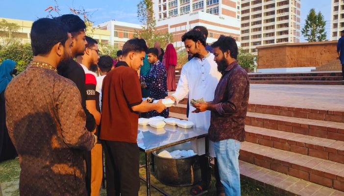 শুক্রবার (২০ ফেব্রুয়ারি) স্বাধীনতা চত্বরের সামনে বিকাল সাড়ে চারটায় শিক্ষার্থীদের মধ্যে সুলভ মূল্যে ইফতার বিতরণ করা হয়।