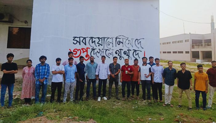 জাতীয় কবি কাজী নজরুল ইসলাম বিশ্ববিদ্যালয়ে গুপ্ত রাজনীতিকে অবাঞ্ছিত ঘোষণা করে ‘দেয়াল লিখন’ কর্মসূচি পালন করা হয়েছে। বুধবার (২২ এপ্রিল) বিশ্ববিদ্যালয়ের নির্মাণাধীন টিএসসি ভবনের দেয়ালে লেখা হয় ‘সব দেয়ালে লিখে দে, গুপ্ত দেখলে থুথু দে’।