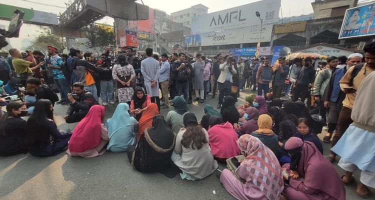 সাত কলেজ শিক্ষার্থীদের সড়ক অবরোধ, যান চলাচল বন্ধ