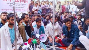 জগন্নাথ বিশ্ববিদ্যালয়ের (জবি) শিক্ষার্থীরা সচিবালয়ের সামনে এসে পৌঁছেছেন। সেখানে রাস্তার উপর অনশনরত শিক্ষার্থীরা বসে গেছেন। সোমবার বিকেল পৌনে পাঁচটার দিকে সচিবালয়ের সামনে এসে পৌঁছান। এ