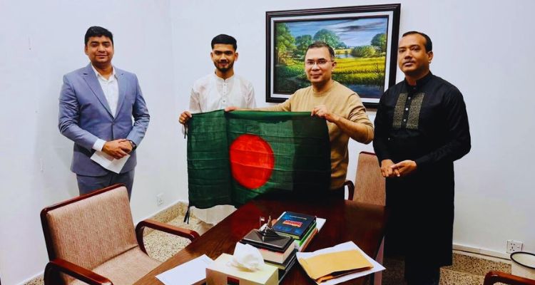 জুলাই আন্দোলনে মুত্তাকিনের ওড়ানো সেই পতাকা তারেক রহমানকে উপহার