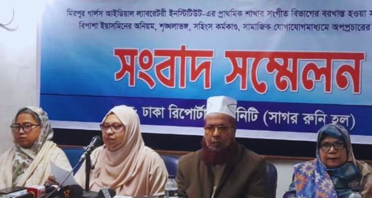 মীরপুর গার্লস আইডিয়াল ল্যাবরেটরি ইনস্টিটিউটের বহিষ্কৃত সহকারী শিক্ষক (সংগীত) বিপাশা ইয়াসমিনের প্রতিষ্ঠানের ধারাবাহিক অপপ্রচার, মিথ্যা অভিযোগ ও হয়রানি থেকে পরিত্রাণ পেতে সহযোগিতা চেয়ে সংবাদ সম্মেলন করেছেন শিক্ষক ও কর্মকর্তারা।
