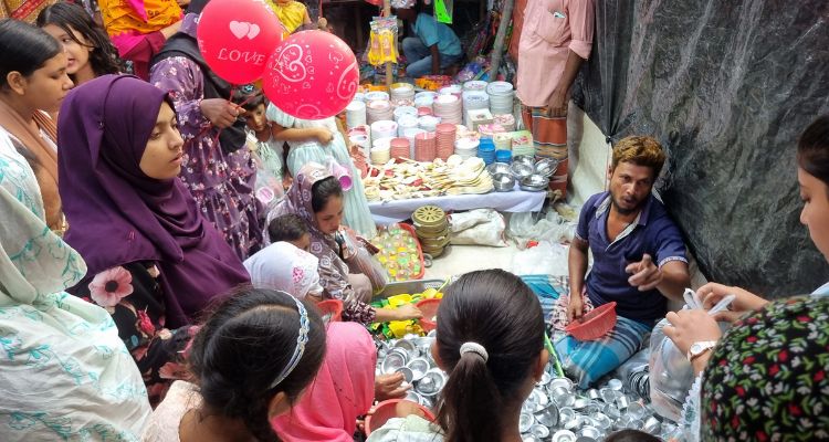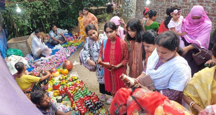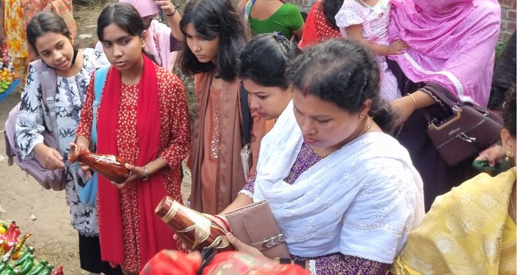 শামিয়ানার নিচে সাজানো দোকানগুলোতে মেয়েদের প্রসাধনী, শিশুদের খেলনা, হস্তশিল্প, মৃৎশিল্প, গৃহস্থালির পণ্য ও মুখরোচক খাবারের সমাহার। শুধু হিন্দু সম্প্রদায় নয়, অন্যান্য ধর্মের নারীরাও স্বাচ্ছন্দ্যে কেনাকাটা ও আনন্দে অংশ নেন।